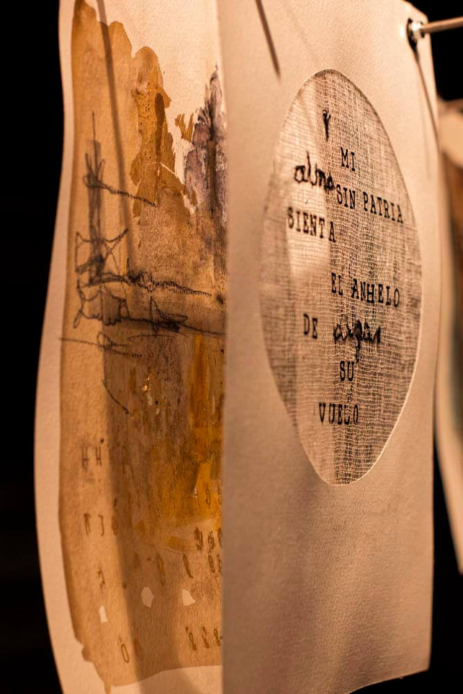 El libro deja de ser únicamente contenedor de palabras para convertirse en artefacto: objeto que se despliega, se fragmenta, se interviene y se resignifica. Cada pieza encarna un gesto de resistencia frente a lo fugaz, una tentativa de fijar lo efímero, la luz que cambia, el recuerdo que se diluye, la emoción que muta, sabiendo que todo registro es siempre parcial, siempre transitorio.